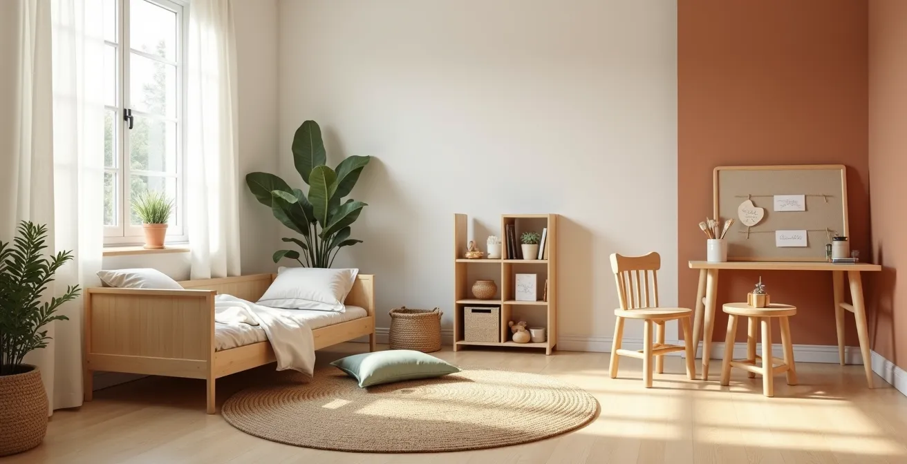 L’essentiel est de garder à l’esprit que chaque élément doit avoir une intention : le lit au sol pour l’autonomie motrice, l’étagère basse pour la liberté de choix, le rangement ordonné pour la structuration de la pensée. C’est cette intentionnalité qui transforme une simple chambre en un puissant outil pédagogique.